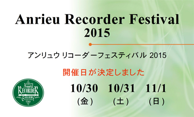 「アンリュウリコーダーフェスティバル 2015」の開催日が決まりました。