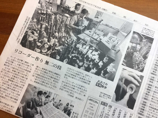 7月26日(日)の読売新聞大阪地域版に、竹山木管楽器製作所の記事が掲載されました。YOMIURI ONLINEで記事をお読みいただけます。