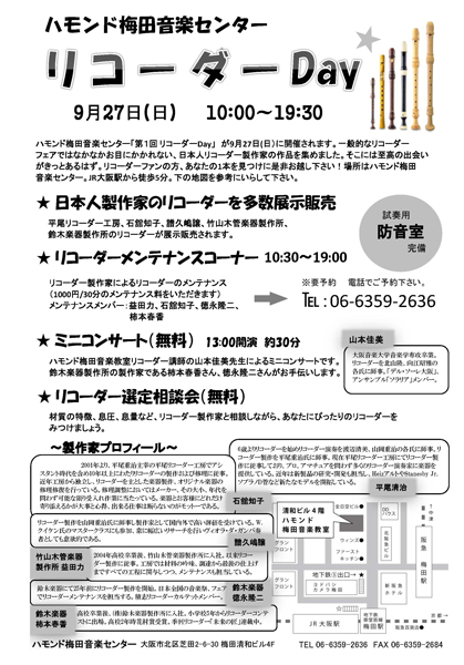 日時:9月27日(日) 10:00 - 19:30 / 会場:ハモンド音楽教室梅田